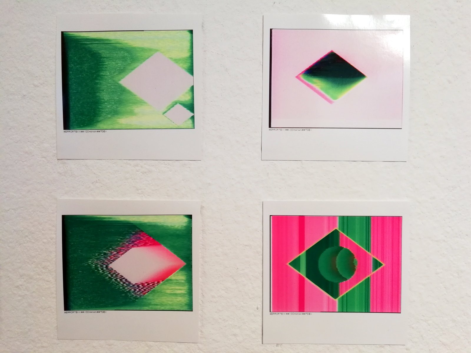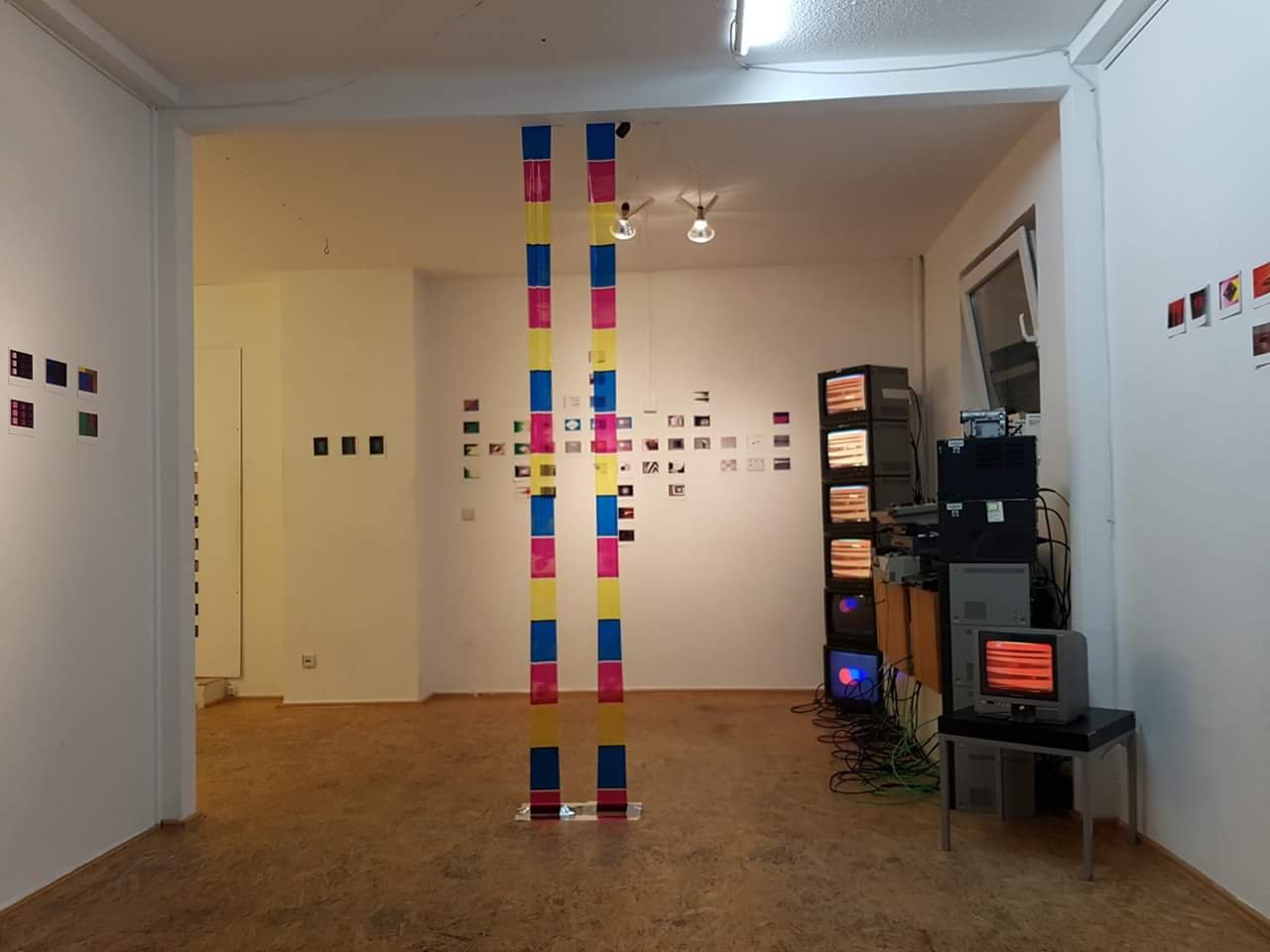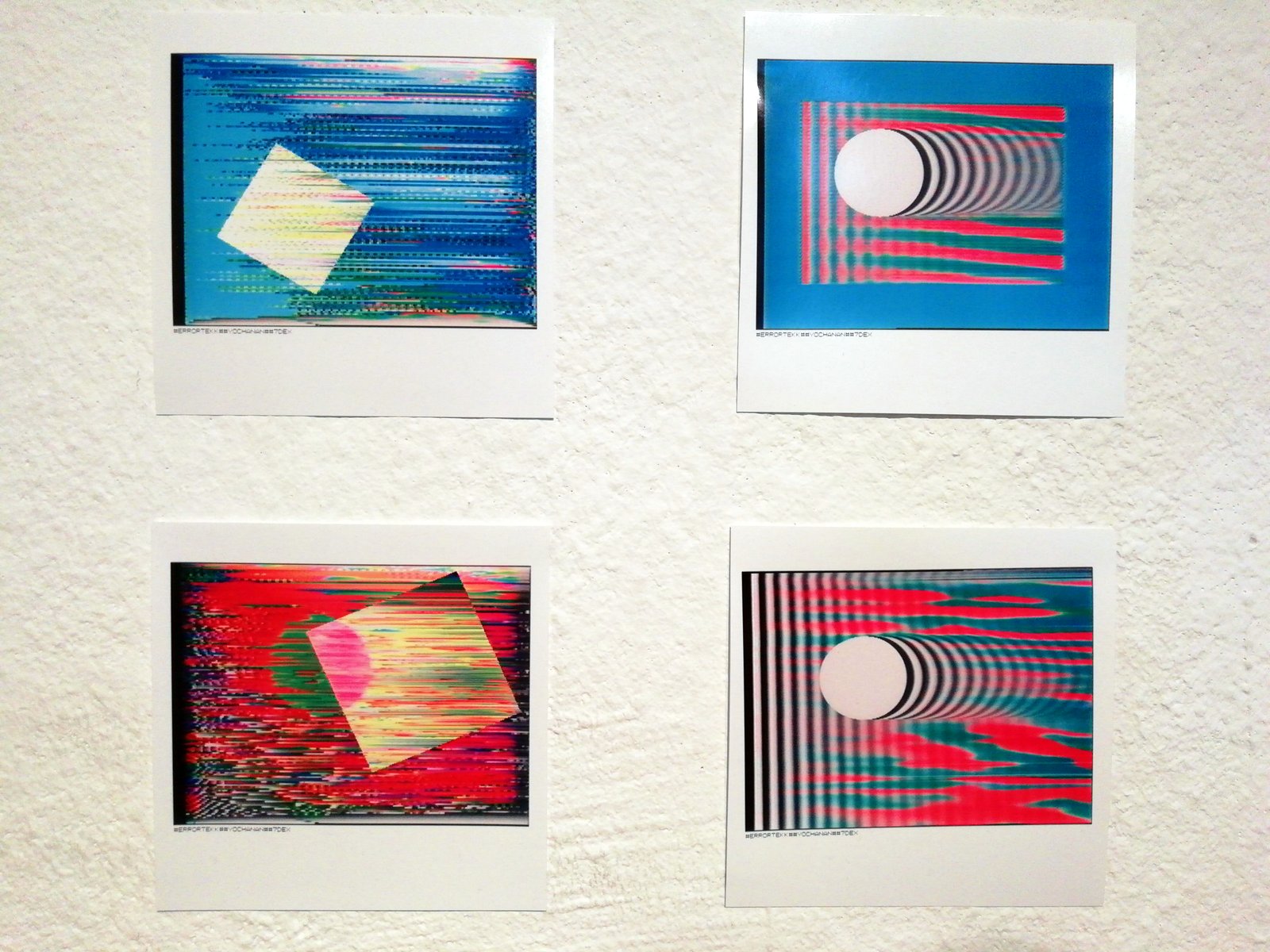 Die Ausstellung beschäftigt sich mit der Gestaltung bewegter Fernsehgrafik und dem Festhalten von Einzelbildern mittels vollfarbigem Video-Druck. Flankiert werden die Drucke von analogen Videobildmischern und Röhrenfernsehern.
