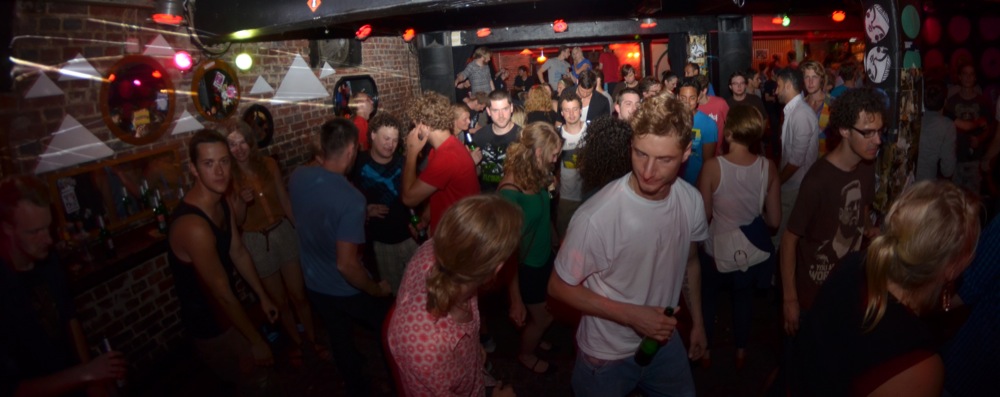 Die beiden Jungspunde sorgen mit genau der richtigen Mischung aus Jungle, Drum ‘n’ Bass und Dubstep dafür, dass wir auf dem Tanzteppich Freudensprünge erwarten – Obacht, die Decken sind nicht so hoch. Und räumliche Grenzen dürfte man schnell vergessen – nicht zuletzt wegen Yochee‘s Visuals und dem Bassboost vom Kunterbunt Soundsystem.