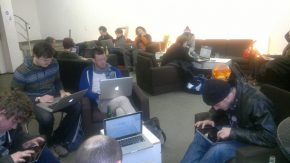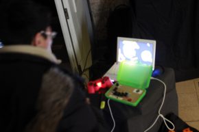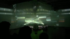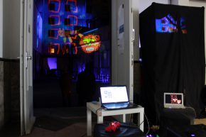 An den anderen Tagen in Mannheim habe ich zum ersten Mal an einem Resolume-Workshop (geleitet von Bonne) teilgenommen. Auch die Einführung in den frühen Film (zu dem Thema habe ich in der Uni mehrere Referate gehalten) war sehr aufschlussreich. Freitag habe ich zusammen mit E dann noch mit Netzen einen Kellerraum dekoriert, er hat mich als Lehrling bezeichnet – huiuiui. Ich glaube, er fand mein „Meisterstück“ ganz gut gelungen. Mir hat es jedenfalls Spaß gemacht. Die Ausstellung war klein aber fein, das seltsame Pianonetz hat gefetzt, das autonome Robokamera-Liebesduo war cool, aber am meisten hat mir die Kinect-Schaukel gefallen, mit der man durch die Sterne schaukeln konnte. Die hätte ich gerne für zuhause. Oder nee: Moritz Simon Geist! Den holen wir zum SHINY TOYS nach Mülheim! Und 2014 sehen wir uns hoffentlich auf der B-Seite wieder!