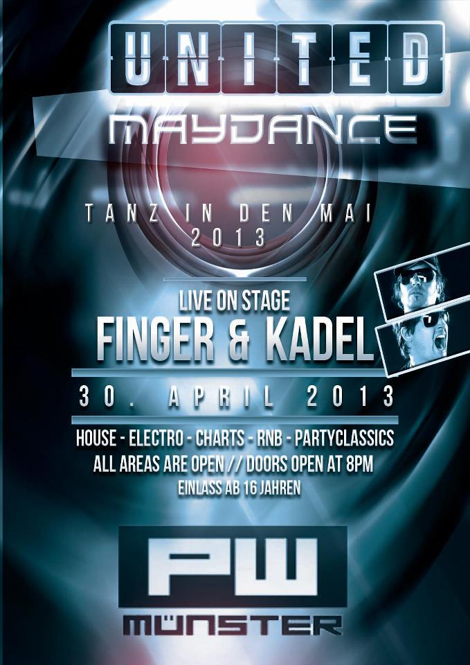 Der Mai ruft und wir feiern 2013 so wie niemals zuvor. Unsere Freunde von Finger & Kadel sind wieder mit dabei! Letztes Jahr haben die beiden die Halle Münsterland abgerissen und werden jetzt die PW Münster rocken. Nach dem Mega Erfolg legen wir dieses Jahr noch einen drauf und habe noch mehr Musikbereiche aufgenommen. So ist jetzt wirklich für JEDEN etwas dabei.