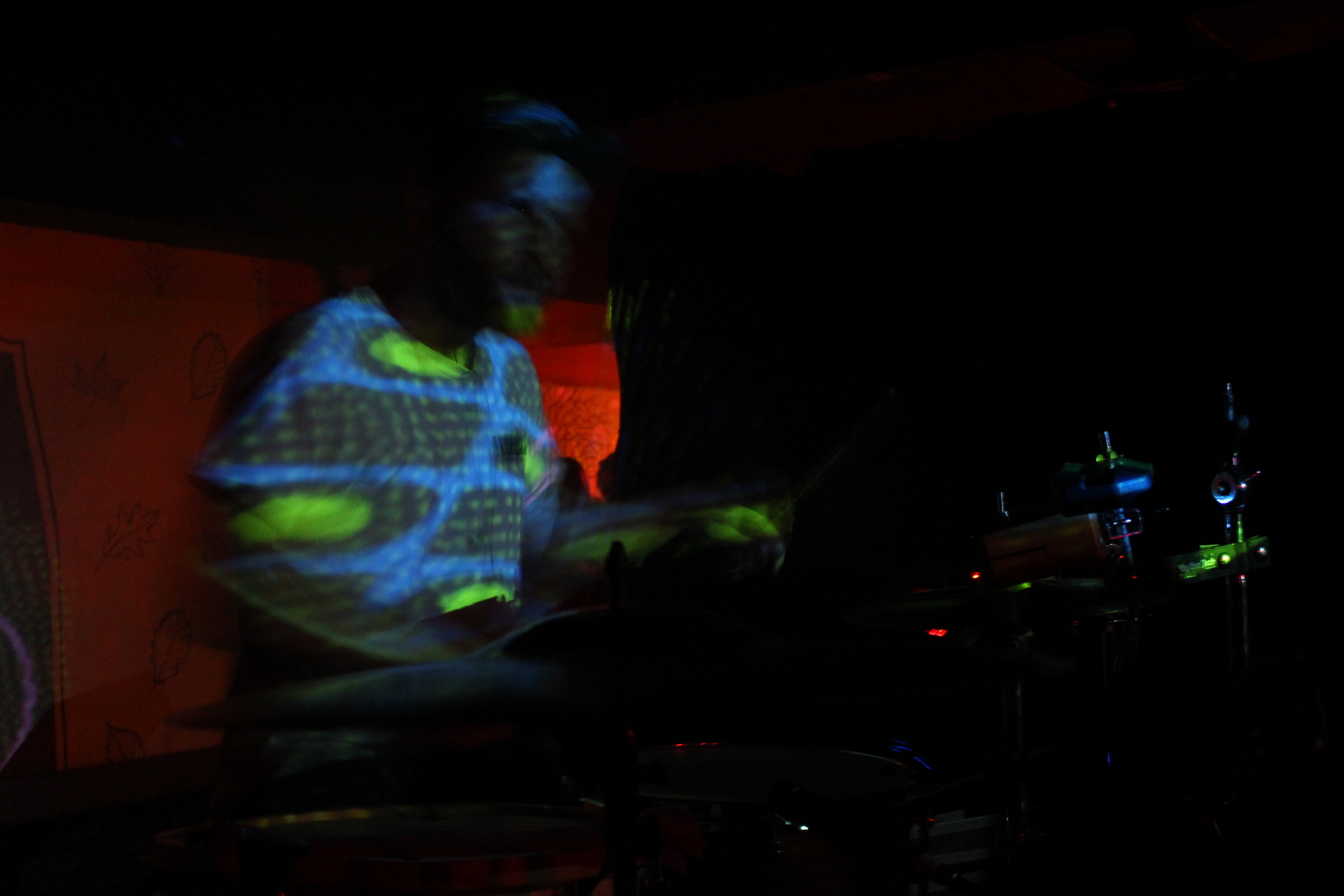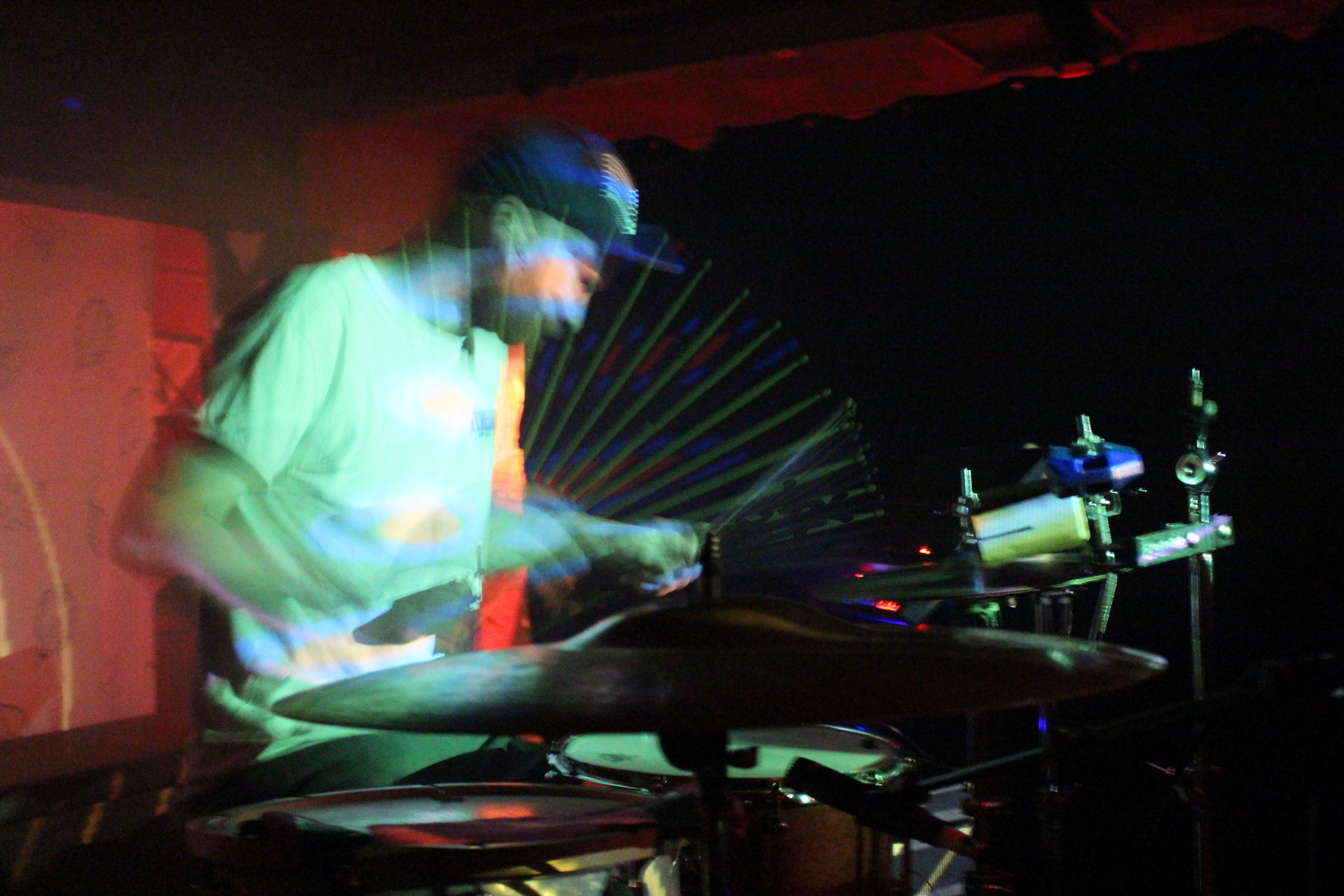 KÖVI [EXCHAMPION] nutzt derweil die Gunst der Stunde und spielt dazu live an seinem Schlagzeug rum…