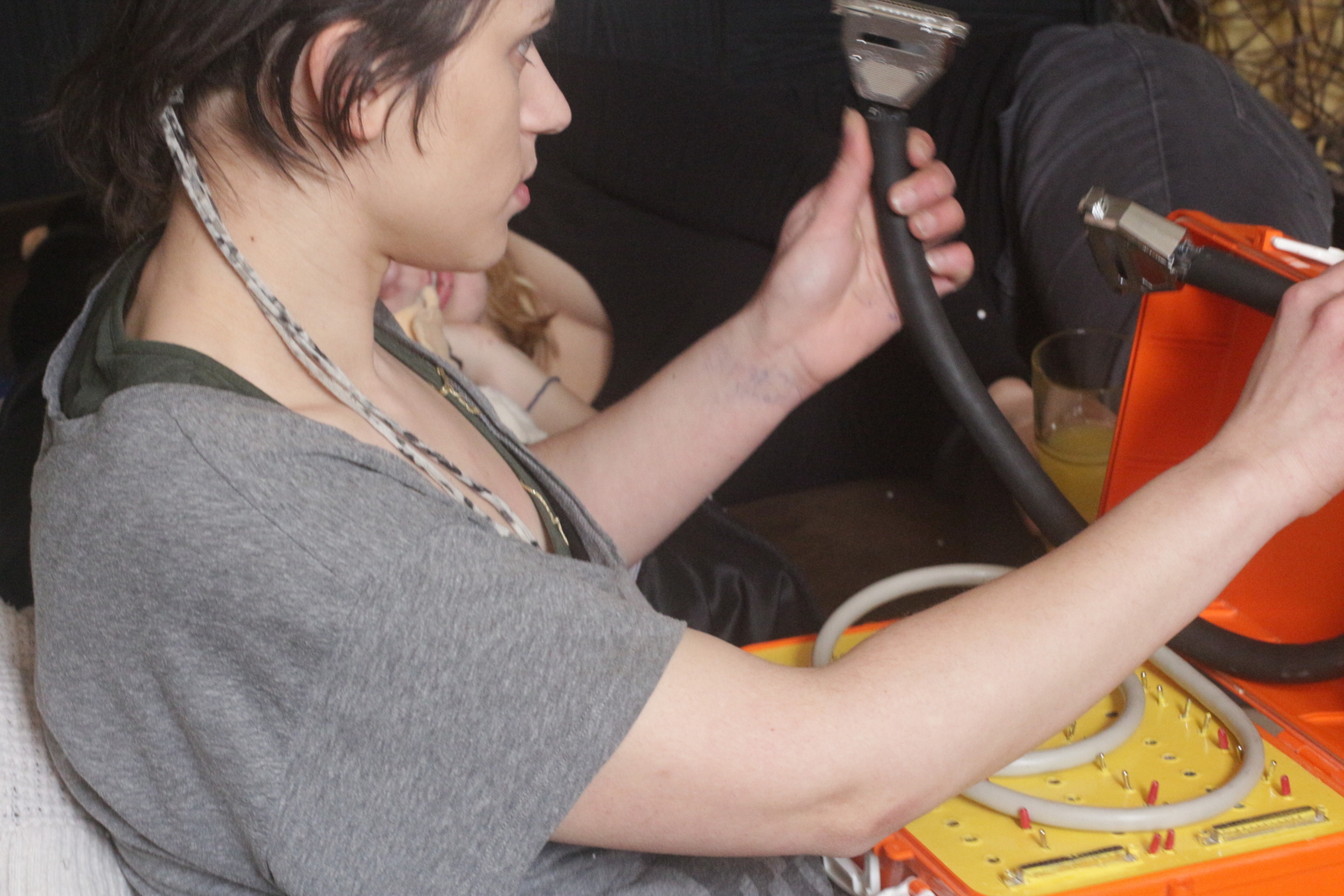 Die neue Version meines AVE3 CVsynth Interface ist in einem Notintubationsköfferchen untergebracht, den ich bei Rümpelfix in Münster bekommen habe. Die im Koffer eingebaute Patchbay kann sowohl einzeln für einen Synthesizer mit 6,3mm Klinkesteckern oder ein gemoddetes Videogerät mit 37-poligen D-Sub-Anschlüssen verbunden werden als auch Video und Audiogeräte als Interface miteinander verbinden.