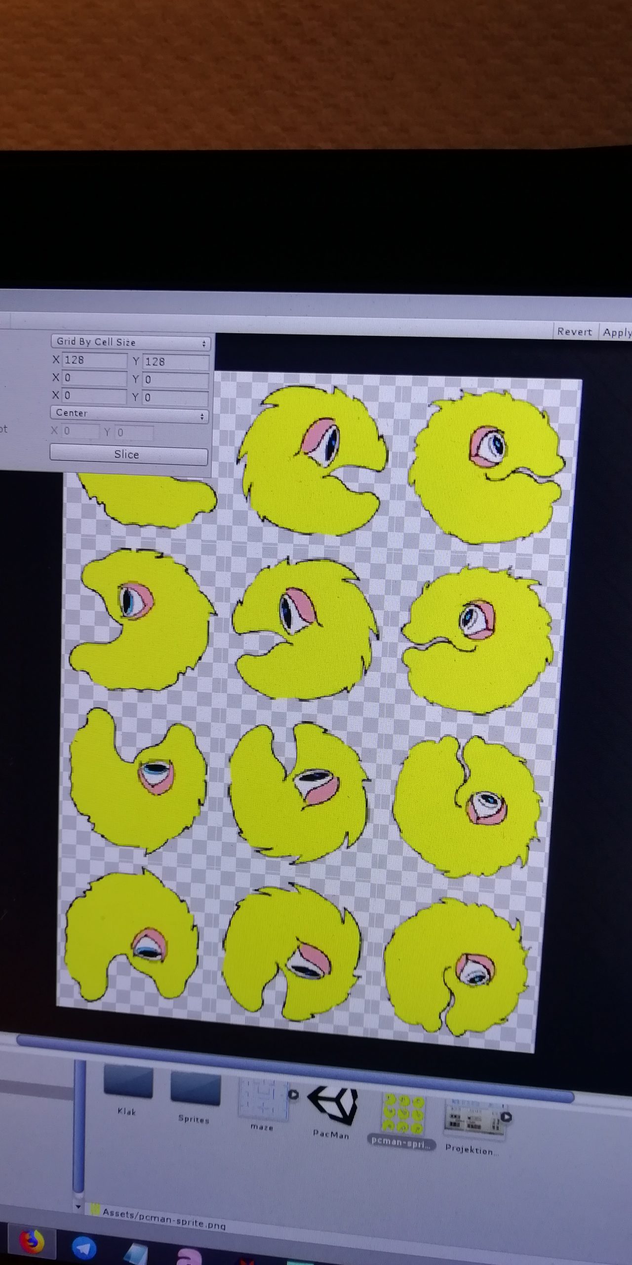 Daher habe ich eine zweite App in Unity für Windows 64bit Betriebssysteme programmiert. Mit Unity ist es möglich, ein hochauflösendes Spielfeld, welches in diesem Fall auf einem aufbereiteten Foto des Gebäudes der Central-Garage besteht, über Texture-Sharing-Technologien wie NDI oder Spout an ein Videomapping-Programm wie Resolume Arena oder Visution Mappio zu senden. Die Unity-App hat hier bereits die native Videoauflösung des Projektors, sodass die Projektion nur bedingt pixelig wirkt (wie eine moderne Version des Spieleklassikers PacMan).