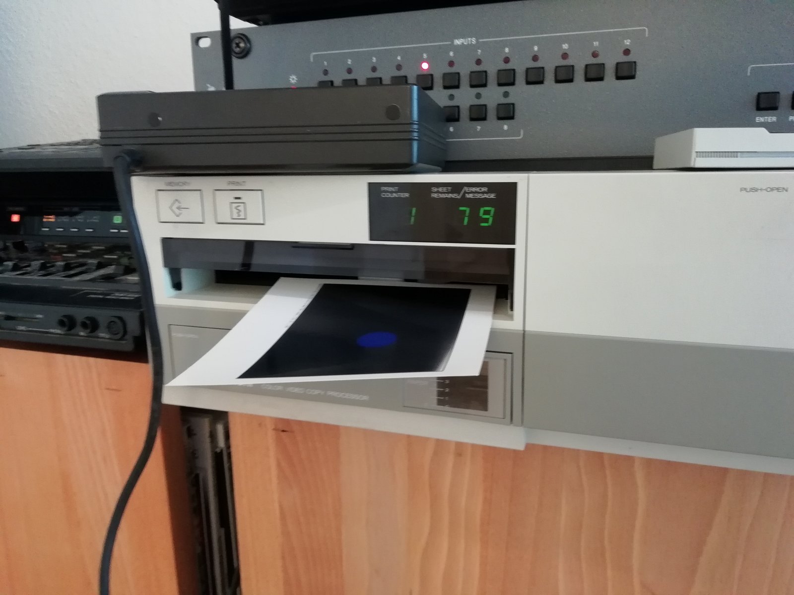 Die Ausstellung beschäftigt sich mit der Gestaltung bewegter Fernsehgrafik und dem Festhalten von Einzelbildern mittels vollfarbigem Video-Druck. Flankiert werden die Drucke von analogen Videobildmischern und Röhrenfernsehern.