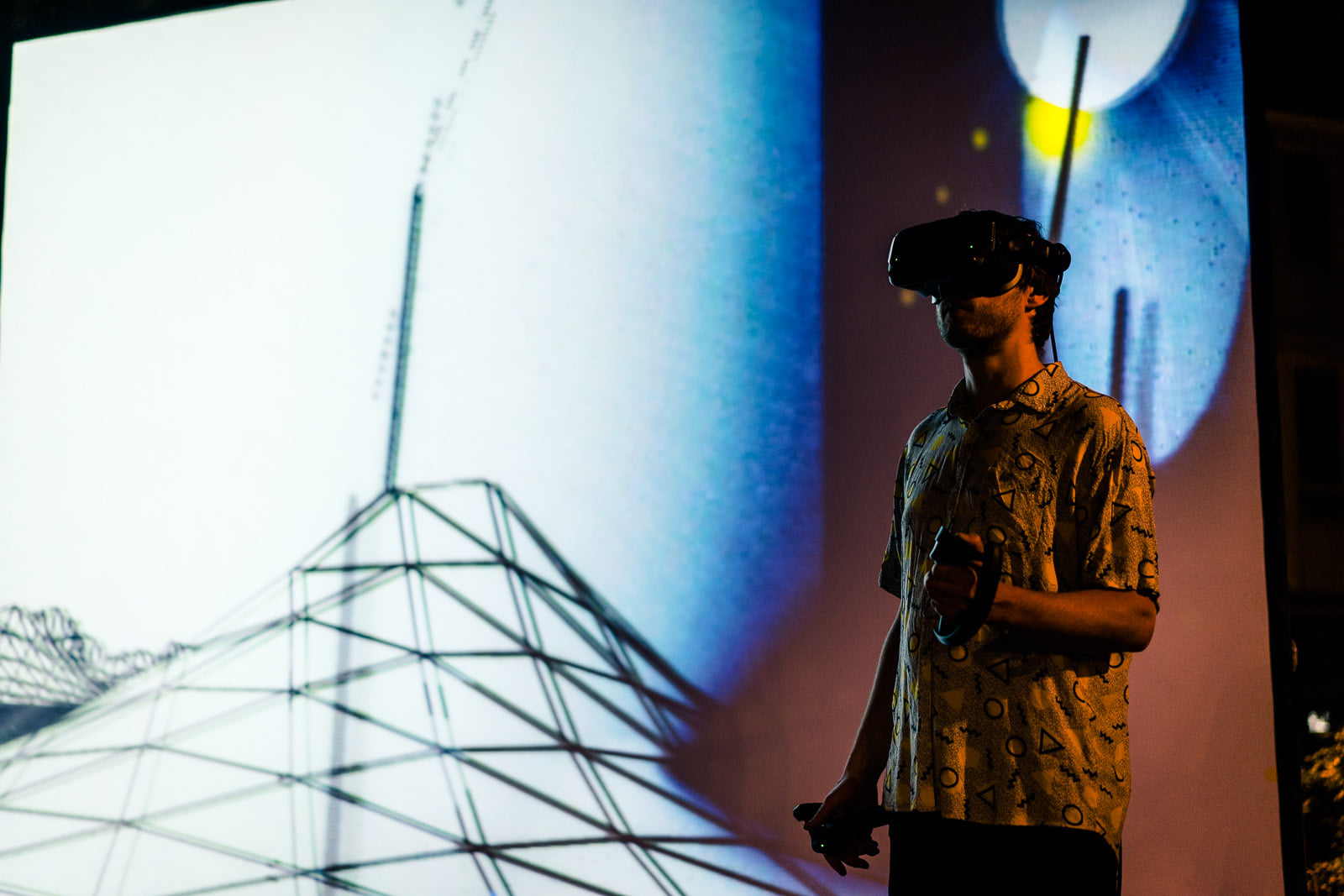 Virtual VJ meets cinematic free jazz: wie öffentlich kann das virtuelle sein? Was passiert, wenn sich virtuelle Räume im öffentlichen Raum einer Stadt öffnen und Einblicke gewähren?