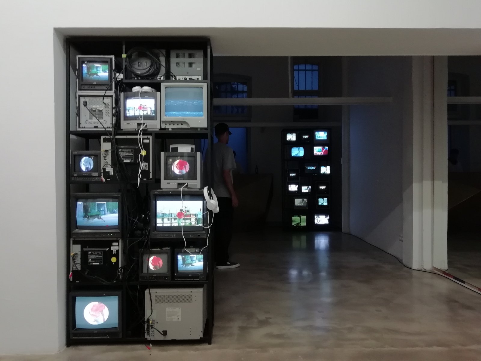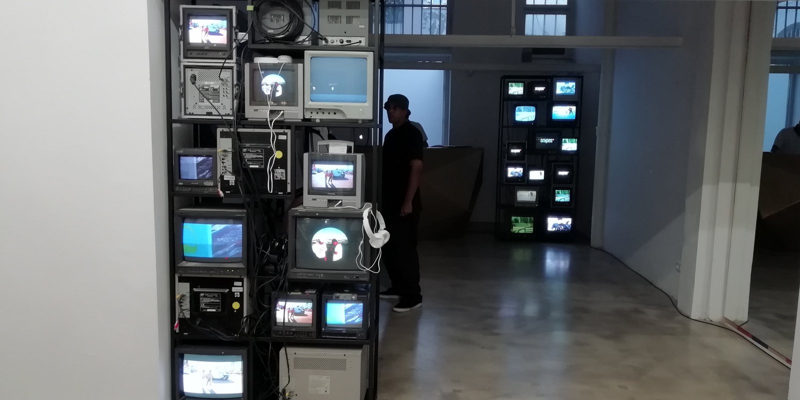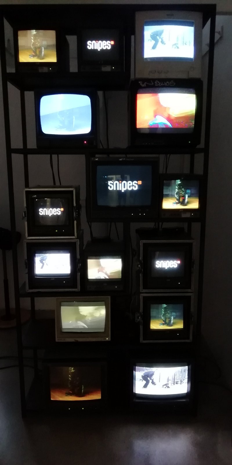 Wie bereits 2018 zeige ich im Rahmen dieser Ausstellung in der „Ninasagt Galerie“ eine Fernseher-Installation in Zusammenarbeit mit dem bekannten Streetwear Retailer SNIPES aus Köln. Gezeigt werden u.a. Videos der aktuellen Rider, die bei der Skateweek von SNIPES gesponsert werden, sowie Video-Aufnahmen der skatebaren Skulptur Cuellars, angefertigt vom Videokünstler Nizan Kaspar.