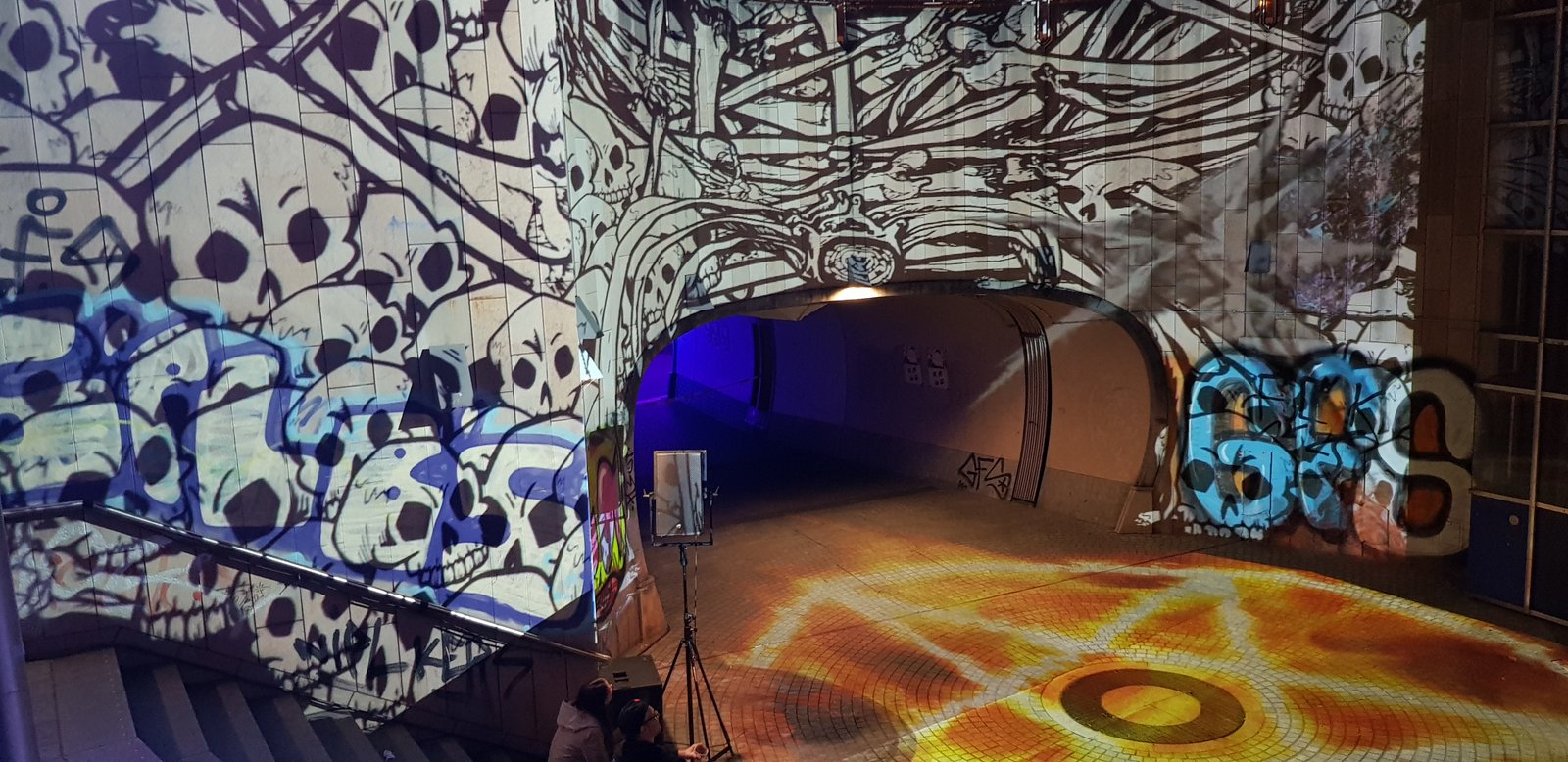 Zum Abschluss der Spookymental Visual Art Convention zeigen wir an der U-Bahn-Haltestelle Rheinischer Platz das Ergebniss des zehntägigen AV-Workshops: Einen 8-minütigen Animationsfilm von Katharina Kloppenborg und Yochanan Rauert mit Musik von Einar Fehrholz!
