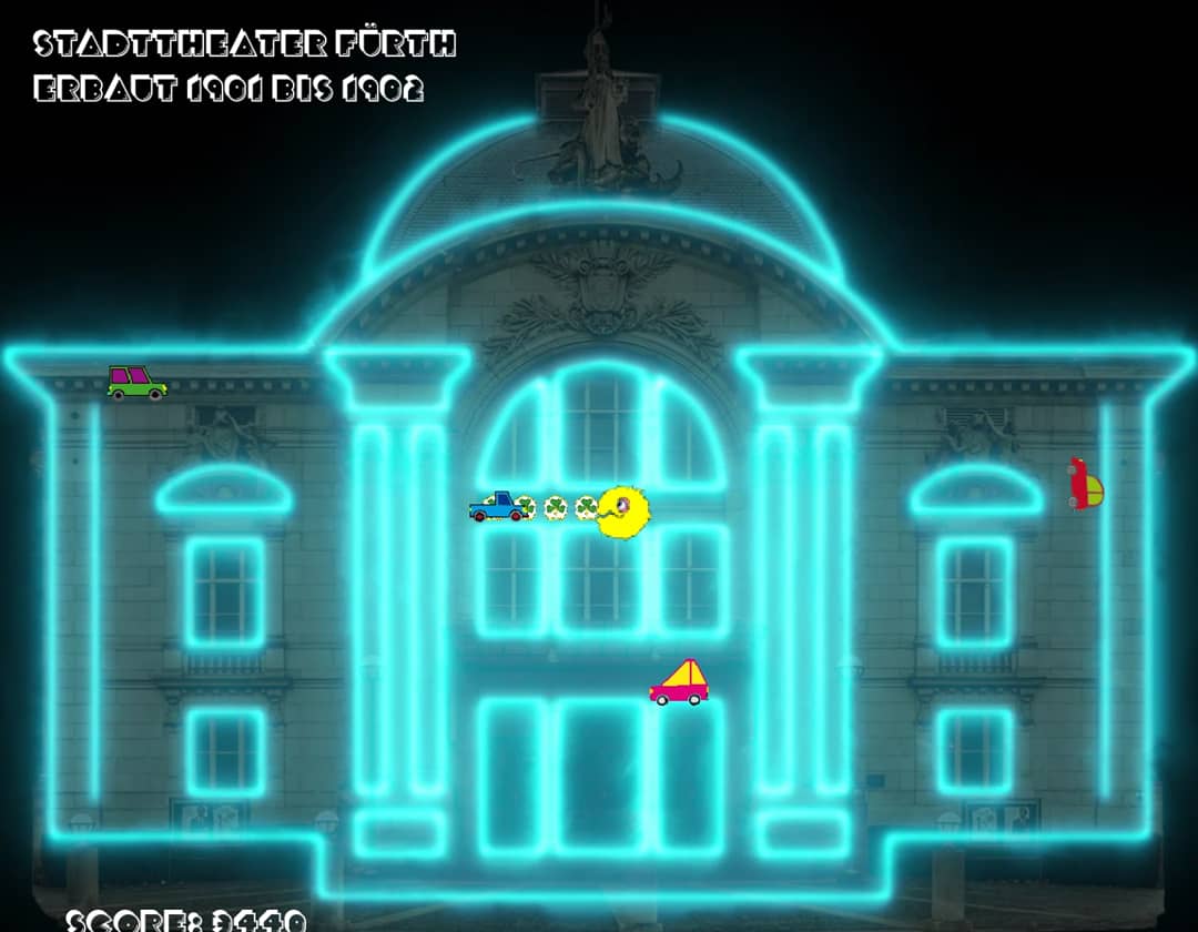 Das Spiel basiert auf einer Idee für eine Fassadenprojektion der Fürtherin Angela Löwen anlässlich des 200-jährigen Fürther Stadtjubiläums 2018 auf der Fassade der ehemaligen Central Garage (daher PacCAR).
