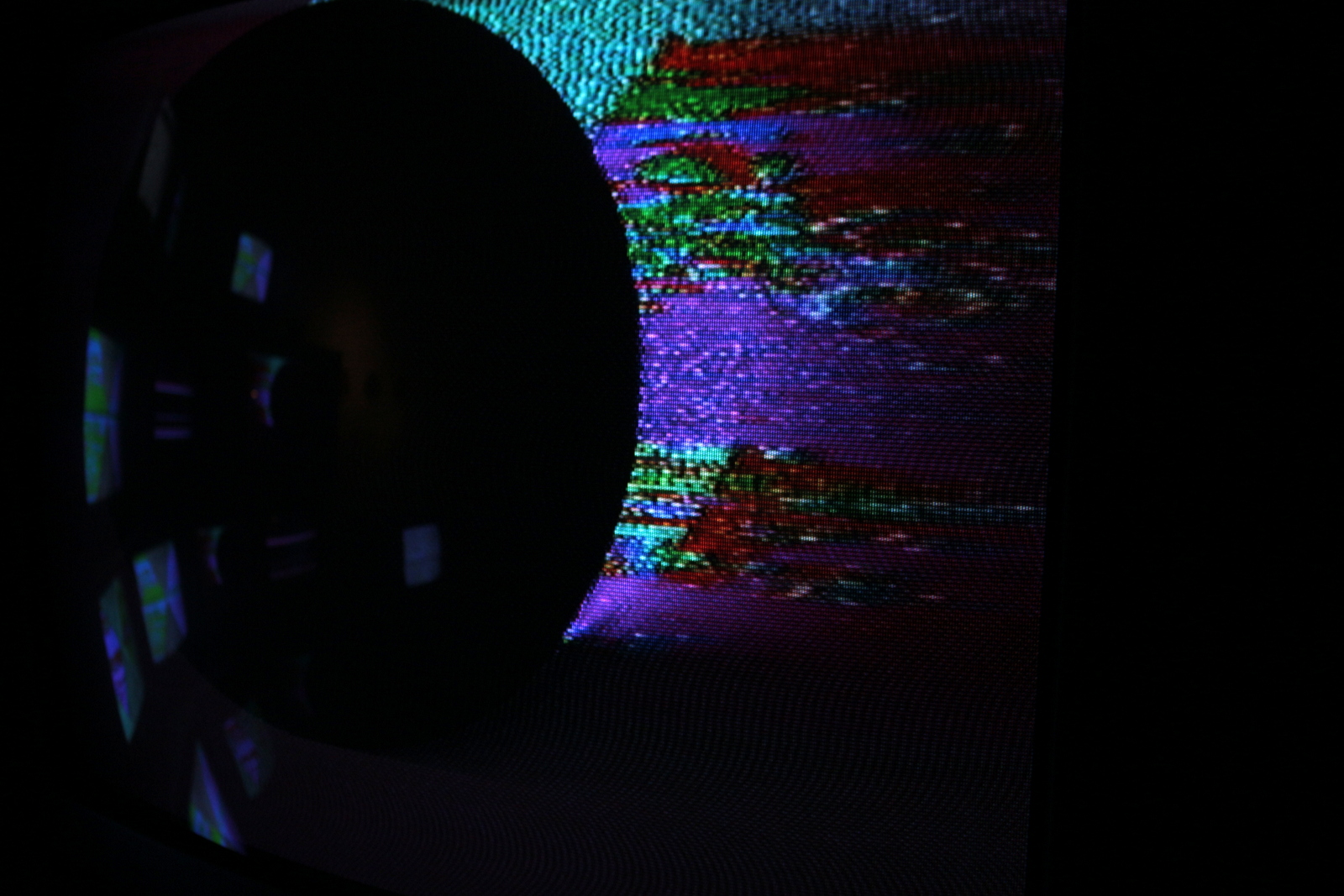 Bilder von der Ausstellung „ERROR TEKK – analog video glitch patterns“