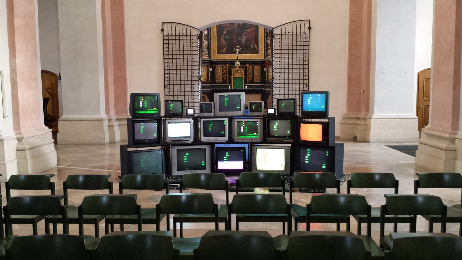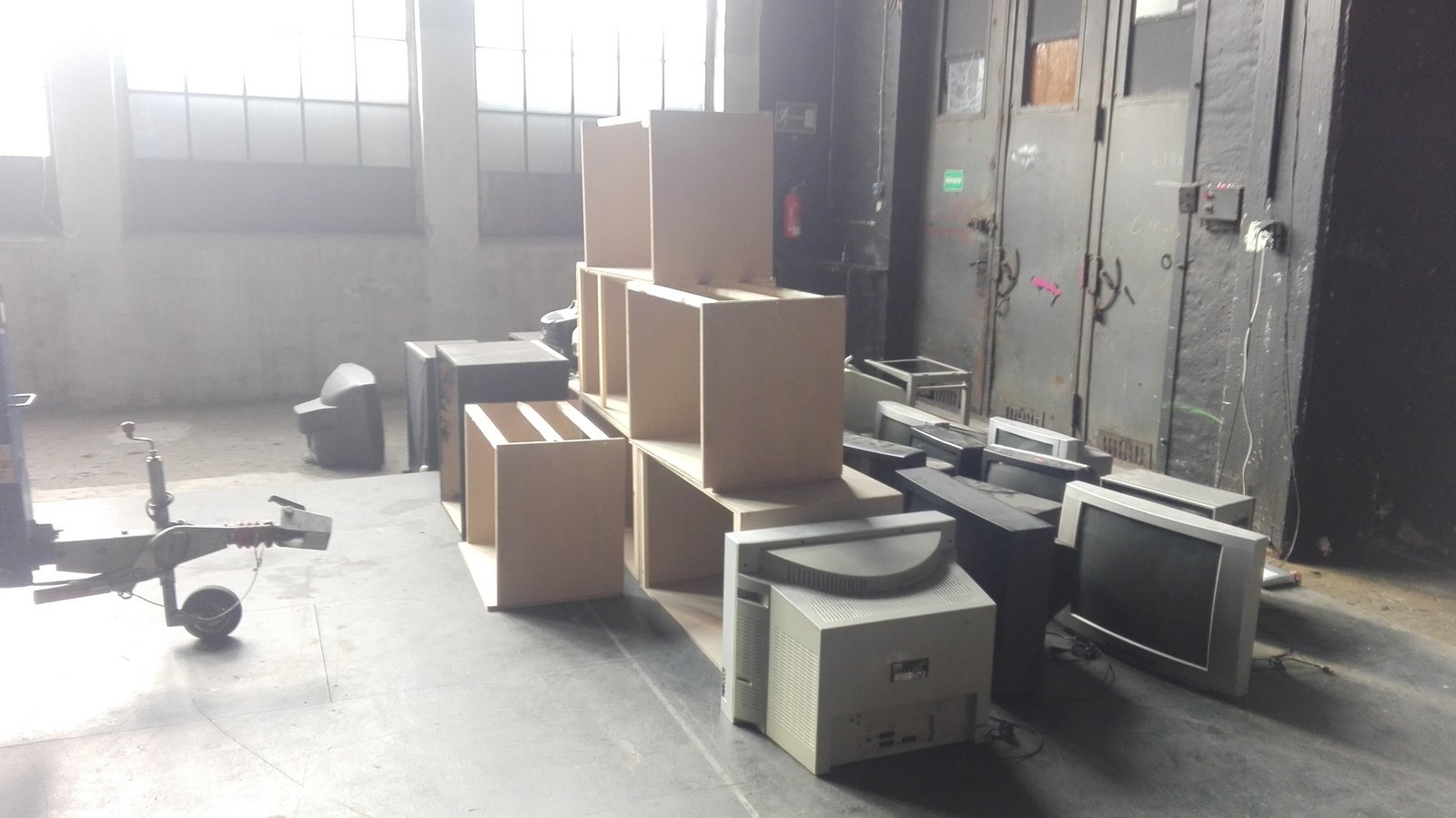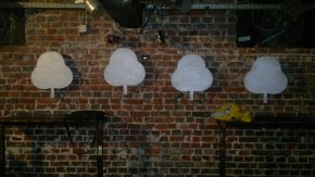 Rekontextualisierte Bäume aus den Schnittresten der Sägeroboter